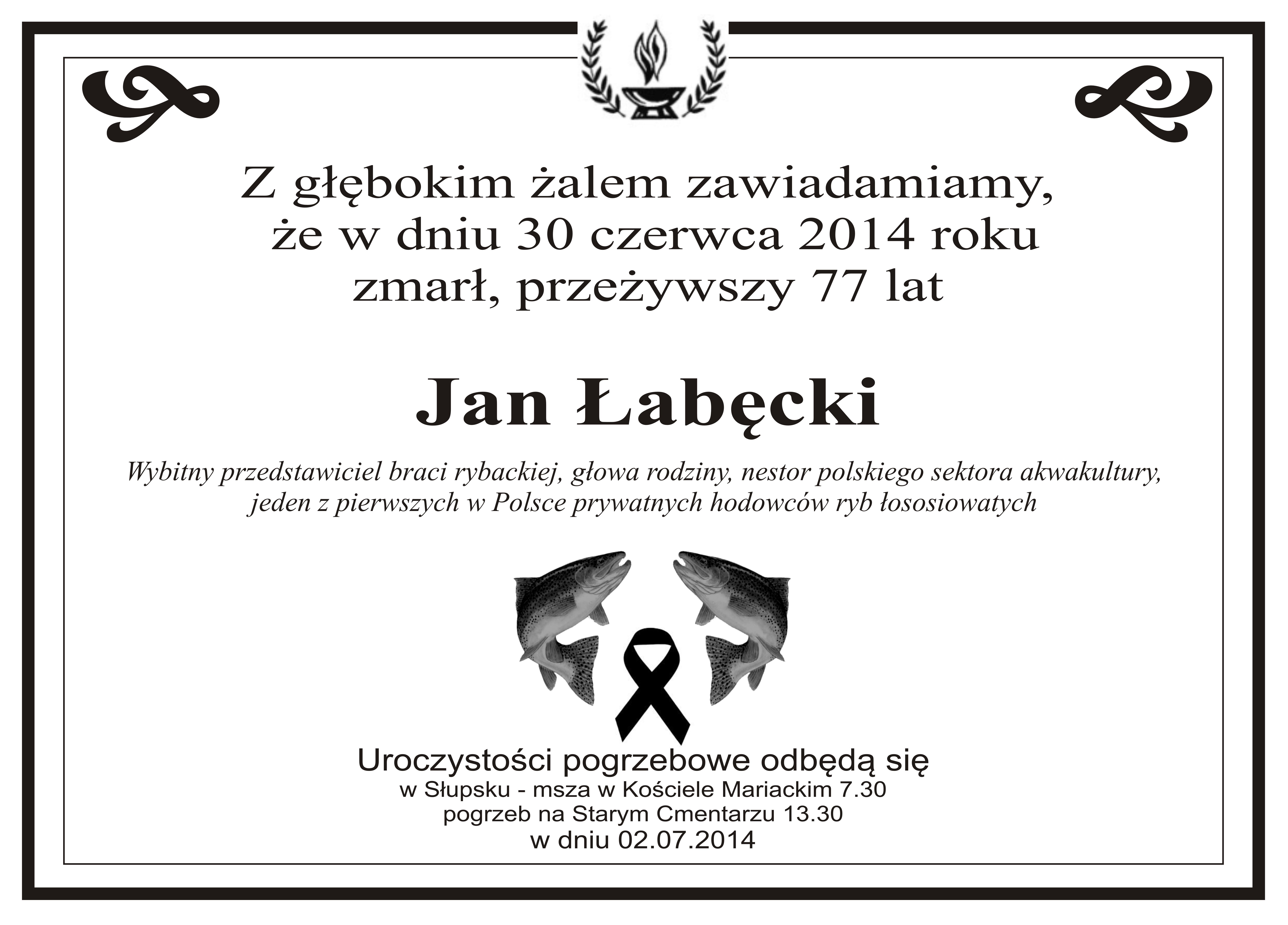 Z przykrością zawiadamiamy o śmierci naszego kolegi Jana Łabęckiego...