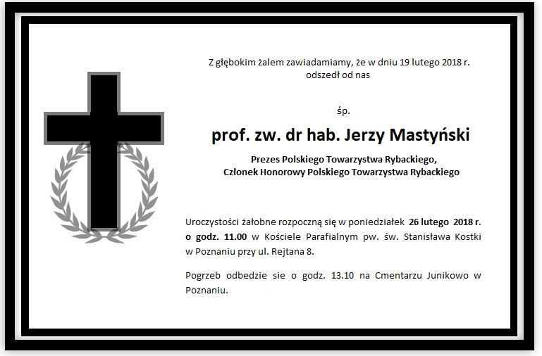informujemy, że uroczystości pogrzebowe Śp. Profesora Jerzego Mastyńskiego odbędą się w poniedziałek, 26 lutego 2018 roku. Msza św. pogrzebowa zostanie odprawiona o godz. 11.00 w Kościele Parafialnym pw. św. Stanisława Kostki w Poznaniu przy ul. Rejtana 8. Pogrzeb odbędzie się o godz. 13.10 na Cmentarzu Junikowo w Poznaniu.