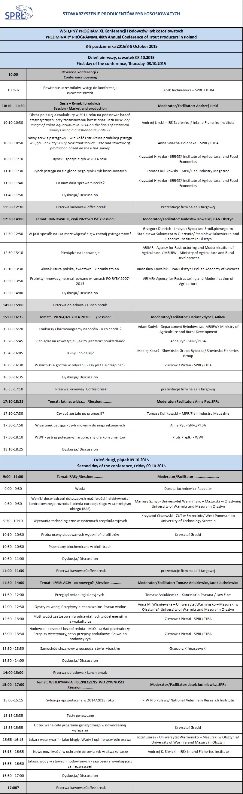 Na stronie internetowej poświęconej XL Konferencji Hodowców Ryb Łososiowatych oraz Technologicznym Targom Akwakultury: www.targi.sprl.pl znajdziecie Państwo wstępny program tegorocznej konferencji...