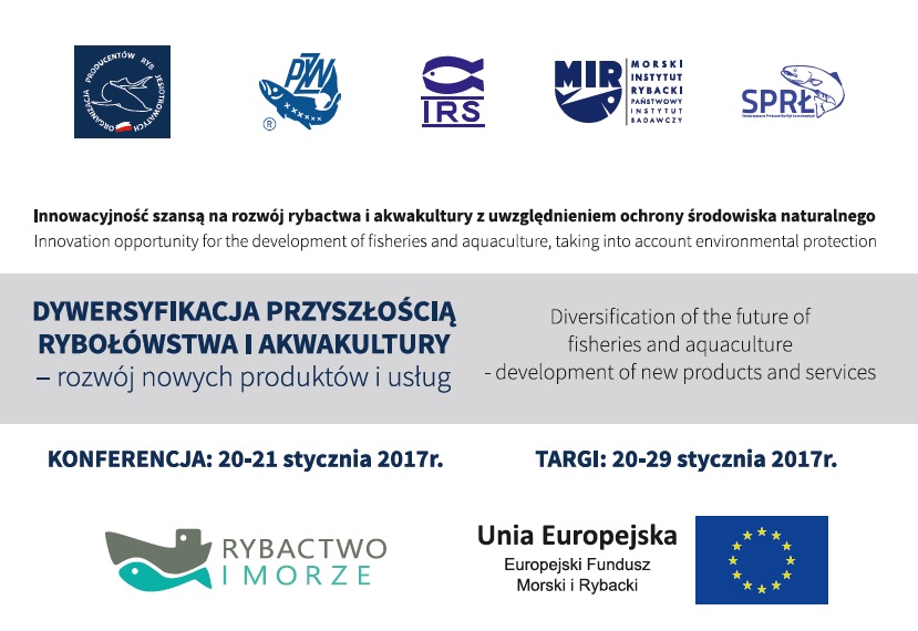 Organizacja Producentów Ryb Jesiotrowatych wspólnie ze Stowarzyszeniem Producentów Ryb Łososiowatych, Instytutem Rybactwa Śródlądowego w Olsztynie, Morskim Instytutem Rybackim oraz Zarządem Głównym Polskiego Związku Wędkarskiego, ma zaszczyt zaprosić na konferencję naukową pn. "Dywersyfikacja przyszłością rybołówstwa i akwakultury - rozwój nowych produktów i usług". Konferencja odbędzie się w dniach 20 - 21 stycznia 2017 roku na terenie międzynarodowych targów Grüne Woche w Berlinie.